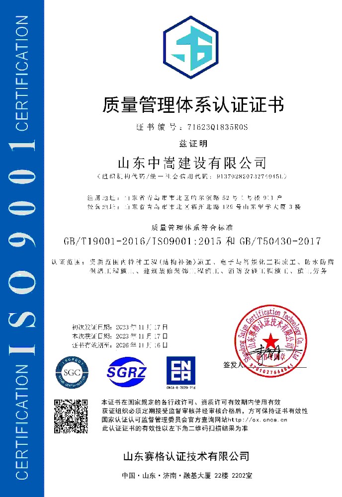 • 山東中嵩建設(shè)有限公司-EC9000證書中文